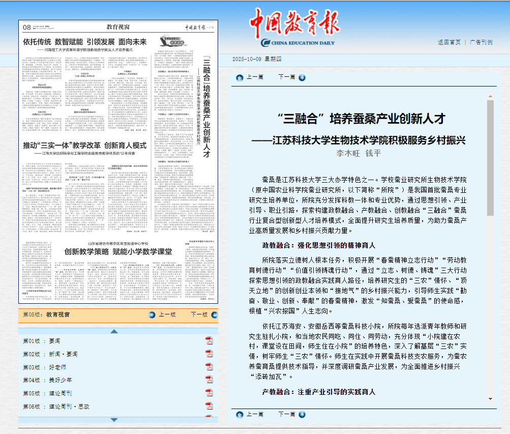 中国教育报头条报道党委书记杨建新署名文章《融合创新助推新质生产力发展》