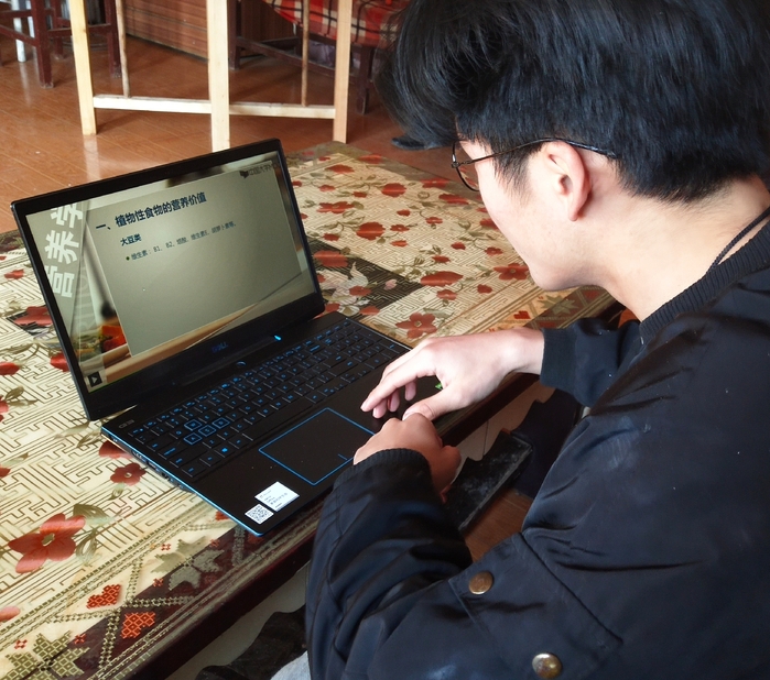 范吉旭是体育学院大二的一名学生,在山东聊城的家中开始了新学期第一天的课程。“原先以为在线学习会很轻松,通过一天的上课,彻底改变了我的观点。老师要求同学们要做充分的课前预习,才能更好提高上课效率,理解课上的内容,否则,拿到课后作业就会‘束手无策’。”