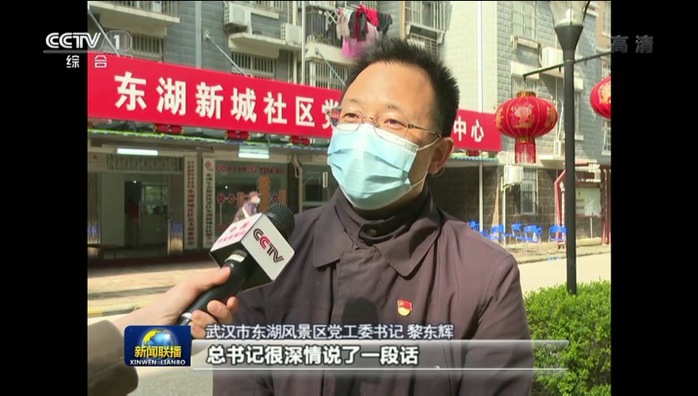 3月10日,中共中央总书记、国家主席、中央军委主席习近平专门赴湖北省武汉市考察新冠肺炎疫情防控工作,代表党中央,看望慰问广大医务工作者、人民解放军指战员、社区工作者、公安干警、基层干部、下沉干部、志愿者、社区居民、患者及家属等。在习近平总书记考察的第二站——武汉东湖新城社区,我校1990届校友、现任武汉市东湖风景区党工委书记黎东辉接受了央视《新闻联播》采访。