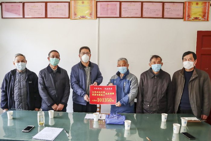 3月19日下午,学校离退休党工委委员朱东林、石大庆、崔赐安、张海耕老师和关工委常务副主任沈贻森老师,代表捐款的283名学校离退休教职工们,将自愿捐赠的10余万元爱心捐款捐赠给教育发展基金会,用实际行动支持疫情防控工作。