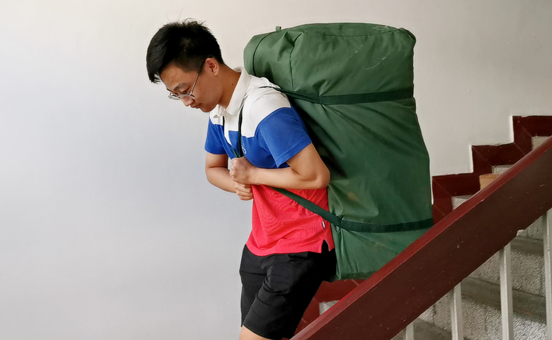 搬新家的过程中,同学们齐心协力、互帮互助的情形随处可见。其中不乏风风火火的“女汉子”,而男生们更是勇于担当、冲锋在前。许聪是材料学院19级焊接2班团支书,临近期末,同宿舍4个同学都离校了,他一个人主动扛起了帮全宿舍搬行李的重任,没有一句怨言。7月1日,能动学院17级新能源专业和外国语学院女生的行李碰巧装在同一辆货车上,爱心不分学院,车到达新校区后,能动学院的男生毫不犹豫地帮助外国语学院的女生将行李搬运到位。