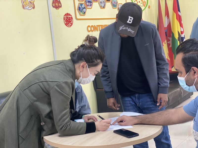 为了做好留学生的疫情防控工作,海外教育学院辅导员第一时间向全体境内留学生点对点发布省、市和学校的各类疫情防控要求,逐一核查、更新校外留学生居住地信息、收集校外人员双码,对校外带星号学生重点关注,跟踪管理。每天下午14:00-16:00去宿舍组织学生打卡签到,测量体温,严格执行“日报告、零报告”管理,严格按要求组织校内留学生进行核酸检测。辅导员通过走访观察,关注在校留学生心理动态,对生病和因封校暂时经济困难的留学生主动关心并提供必要的帮扶。