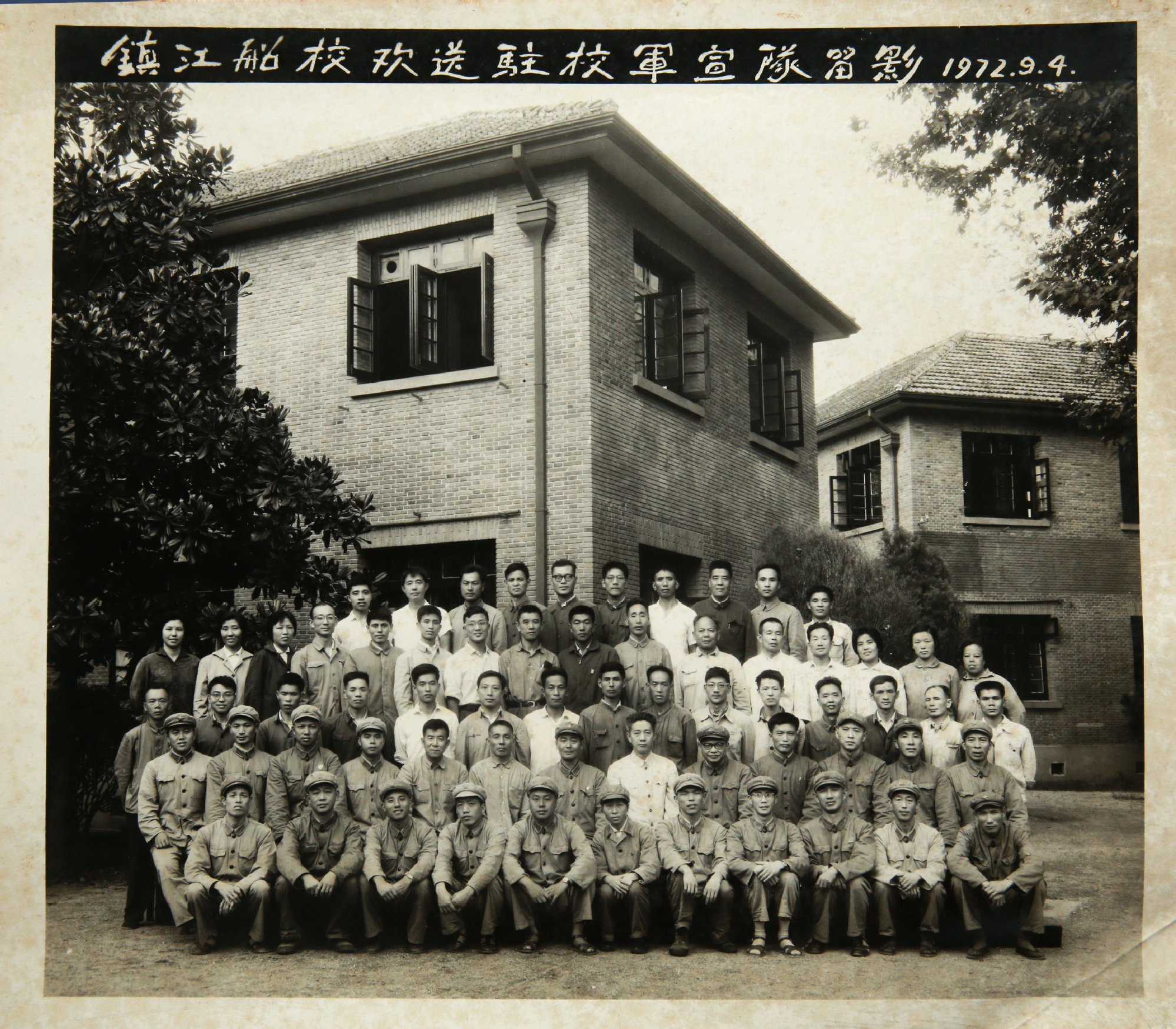 镇江船校欢送驻校军宣队留影(二排右六为肖流,摄于1972年9月4日)