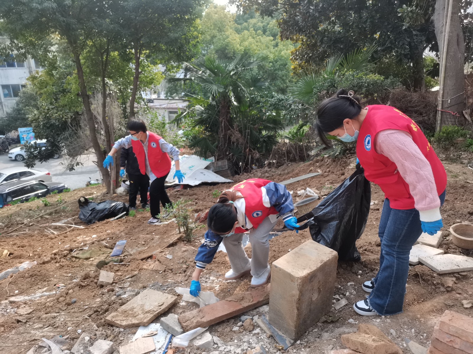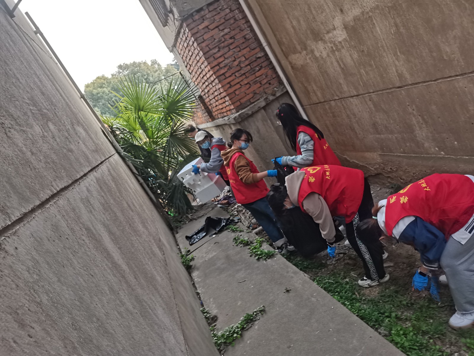 同学们在社区工作人员的指导下分成两个小组,井然有序地扫卫生。同学们清理了居民楼前空地的建筑垃圾,拔除了居民楼附近的杂草,并且对楼栋死角居民自行堆放的垃圾进行了处理,将所有垃圾进行分类,杜绝了消防安全隐患。