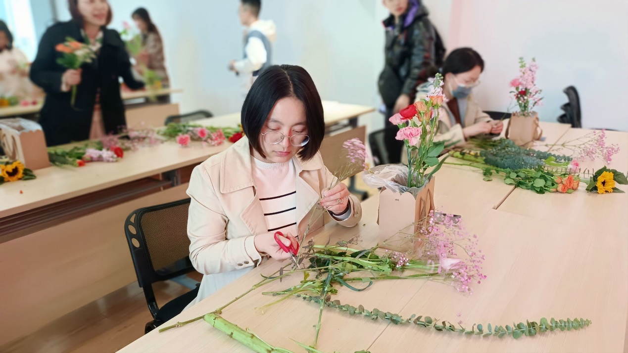 丹心映日月,赤诚浇新花,秋果结累累,桃李满天下,所有的诗词歌赋,都颂不完对您的尊敬和谢意。在第113个“三八”国际劳动妇女节之际,为丰富广大女教师的业余生活,活跃校园节日气氛,展示学院女教师的风采,让全体女教师过一个和谐、快乐、温馨、难忘且有意义的节日,生物技术学院团委联合所院工会,于3月8日下午在生技楼330开展庆祝“三八”妇女节特别活动,活动项目有插花和冷制蚕丝手工皂,活动由研究会执行主席曹鑫雨和林明君主持,30多名女教师参加此次活动。