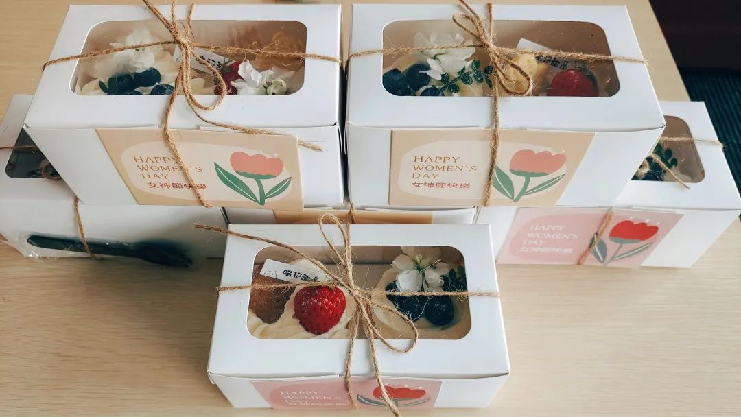 计算机学院在学院楼一楼大厅开展三八妇女节节日慰问活动,学院为每位女教师安排了一束鲜花、一盒小甜品蛋糕,寓意春暖花开、甜甜蜜蜜、工作顺利,借此机会感谢学院女教师们为学院高质量发展做的突出贡献。