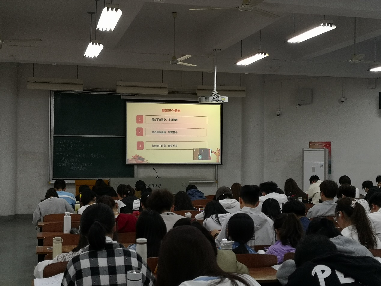 最后,郭老师进一步强调了学习二十大的重要性,并再次强调同学们要坚定不移听党话、跟党走,做有理想、敢担当、能吃苦、肯奋斗的新时代好青年,让青春在党和人民最需要的地方绽放绚丽之花。