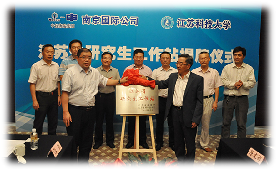 2016年,由学校船舶与海洋等学院和江苏现代造船有限公司合办的研究生工作站被全国工程专业学位研究生教学指导委员会授予 “全国示范性工程专业学位研究生联合培养基地”荣誉称号。工作站中的导师既是学校教师又在企业挂职,所做的课题就是实际工程应用中的真实问题。研究生在企业中学习,每天需要按时打卡坐班,研究课题和所写毕业论文可以在项目研发过程中实现“量身定制”,毕业后直接在企业就职,能够立刻上手工作。研究生在校内进行理论学习,在培养基地进行工程实践,双方优势互补、互惠共赢,通过技术创新,实现协同育人。