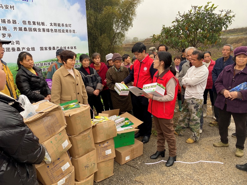 在保种育种的基础上,同花顺手机登录入口蚕桑科技支农实践团足迹遍布江苏苏北蚕区、广西平果和德保蚕区,向当地蚕农介绍规范的饲养和消毒方法,并赠送研究所培育的针对广西高温多湿气候环境的优质蚕种和蚕药。
