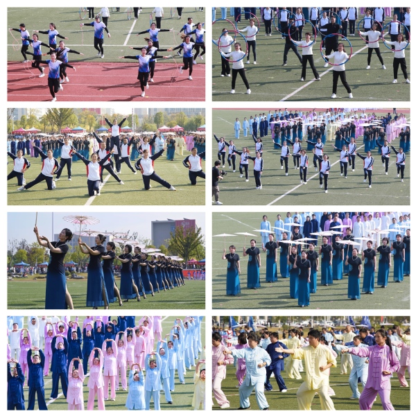 由工会组织,来自全校各单位的300余名教职工带来了多元运动风采展示。花样跳绳“绳彩飞扬”、呼啦圈“快乐转起来”、毽子操“毽舞青春”、旗袍秀“清雅·秋韵”以及自编霍元甲版八段锦,均是各基层工会和教职工协会选送的“一会一品”特色运动品牌项目,动静之间,皆成风景,彰显了我校教师快乐工作、健康生活的文化氛围。