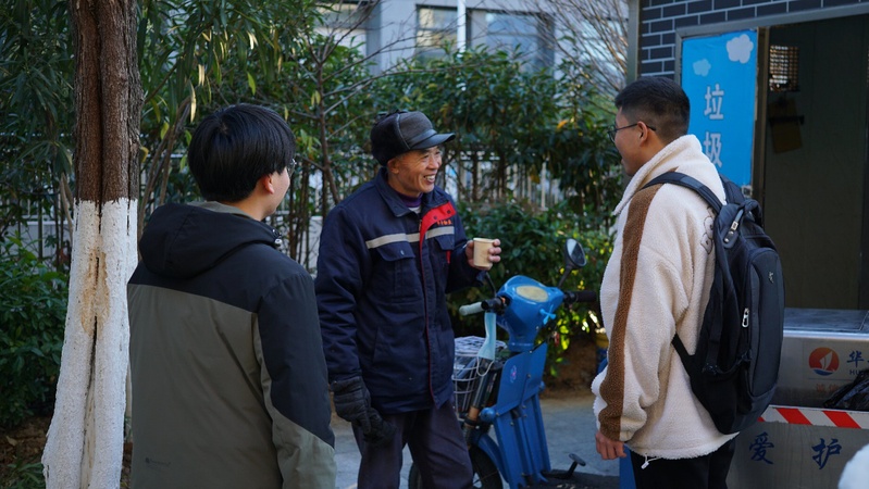 凛冽的寒风挡不住送关怀的脚步,深冬的严寒冷不了一颗颗送温暖的心。为确保活动顺利开展,工作人员先与学校的后勤主管核对当天保洁人员的工作地点和时间,为后续活动确定地点和时间。活动当天,志愿者们早早就开始准备材料,生姜、鞋垫、热水、暖水壶。随后志愿者们身着志愿马甲,同志愿者一起将一杯杯热气腾腾的姜茶送到每位在工作中的保洁工人手中,帮助他们驱散寒冷,叮嘱他们注意防寒并表达对他们的感激与祝福。同时志愿者们又分成两队,一队暂接环卫工人工作,替他们清洁校园,缓解其工作压力。另一队成员询问环卫工人鞋码尺寸,为他们裁剪合脚舒适的鞋垫,寓意着同学们对保洁工人的祝愿:幸福的路从脚下开始。面对志愿者们的嘘寒问暖,保洁工人们也表达了对志愿者们的祝福,嘱咐大家要及时增添衣物,注意冬季防寒保暖。“姜汤深深地温暖着我们的心,感谢同学们的关心。”看着保洁工人们脸上洋溢的笑容,同学们的内心也感受到了温暖与爱心。