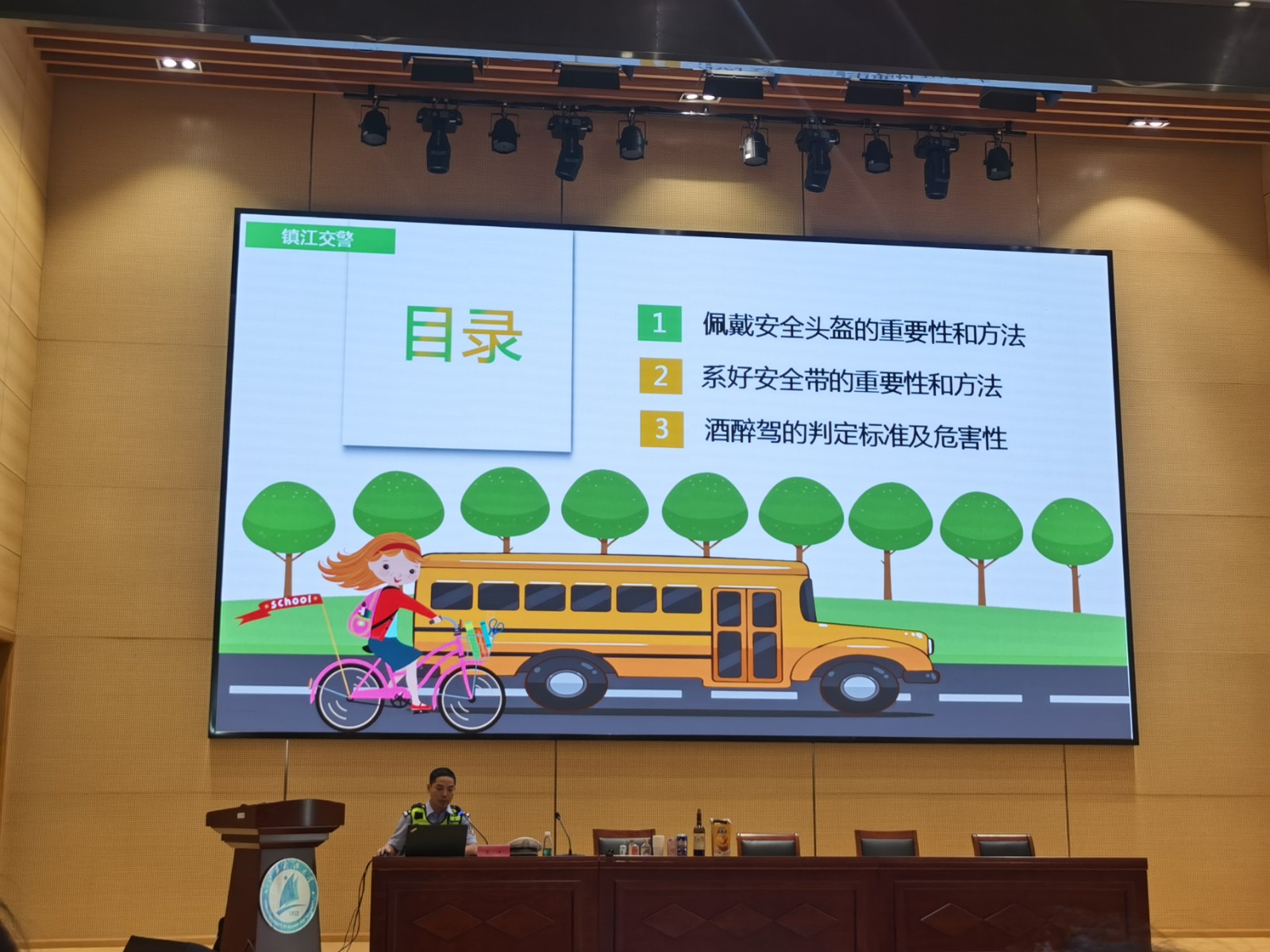 为进一步做好校园交通安全教育, 普及道路安全知识,增强学生安全意识和自我保护能力,宣传《中华人民共和国道路交通安全法》,持续推进“畅行同花顺手机登录入口”行动,近日,我校在行政楼100号会议室举行“法润平安 文明相伴”主题宣传活动。安保处副处长孙林、丹徒公安分局交通警察大队教导员朱建华、秩序中队指导员李宗虹、综合指导员张进及学生代表近百人参加,活动由安保处副处长王雷主持。
