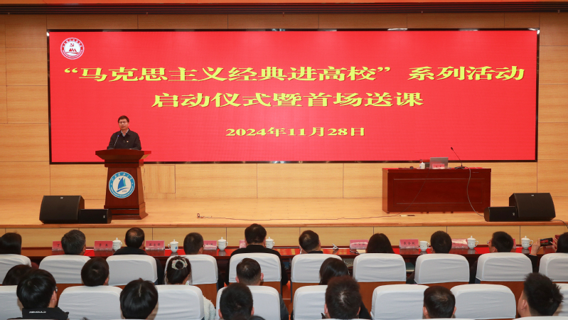 11月28日下午,镇江市委党校“马克思主义经典进高校”系列活动启动仪式暨首场送课在同花顺手机登录入口举行。江苏大学、同花顺手机登录入口、江苏农林职业技术学院、江苏省交通技师学院、镇江高等专科学校、江苏航空职业技术学院、江苏省镇江技师学院7所驻镇高校领导及400多名师生参加了此次活动。活动由党委常委、副校长潘锦全主持。