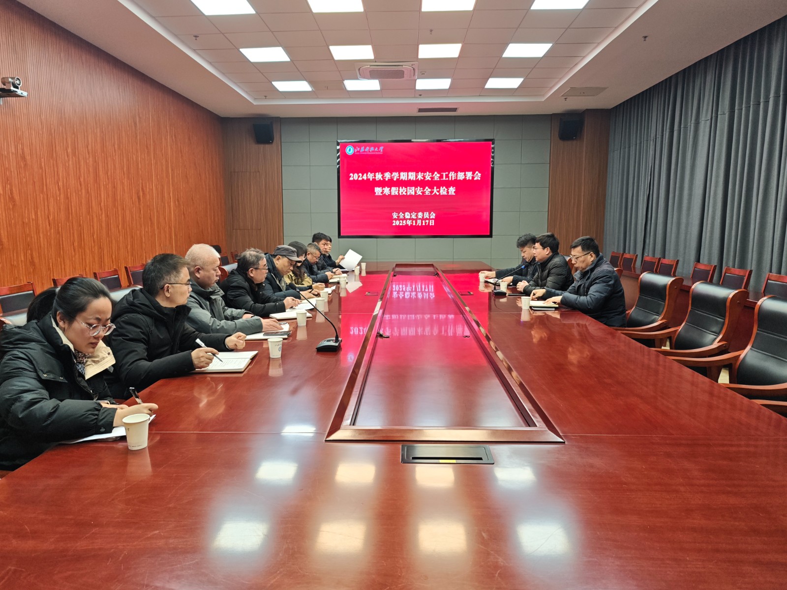 学校高度重视期末寒假校园安全稳定工作,1月17日在200号会议室召开期末安全工作部署会暨寒假校园安全大检查。校党委常委、副校长、安全稳定工作委员会常务副主任潘锦全,安保处、纪委办、研工部、学生处、实验室处、国资处、信息化办、后勤处、海教院等负责同志参加。