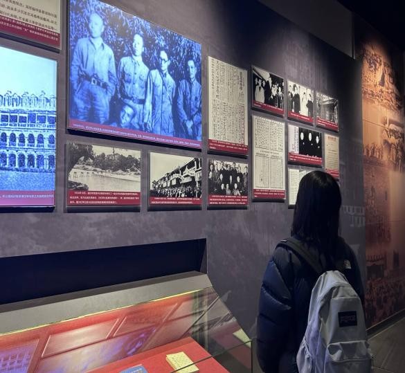 1月19日实践团成员来到无锡博物馆革命历史馆展馆一进行参观学习。展馆中展示了众多英雄的事迹:他们或是活跃在街头巷尾的地下党员,冒着生命危险传递情报;或是积极参与工人运动的普通劳动者,为争取权益、唤醒民众而呐喊。在“肩负民族复兴希望的无锡人”展馆内,秦邦宪的事迹令人瞩目。作为中国共产党早期的重要领导人之一,秦邦宪(博古)自投身革命起,便将自己的一切奉献给了党和人民的事业。在风云变幻的革命年代,他以卓越的政治见解和坚定的信仰,为党在不同历史阶段的决策与发展贡献力量。
