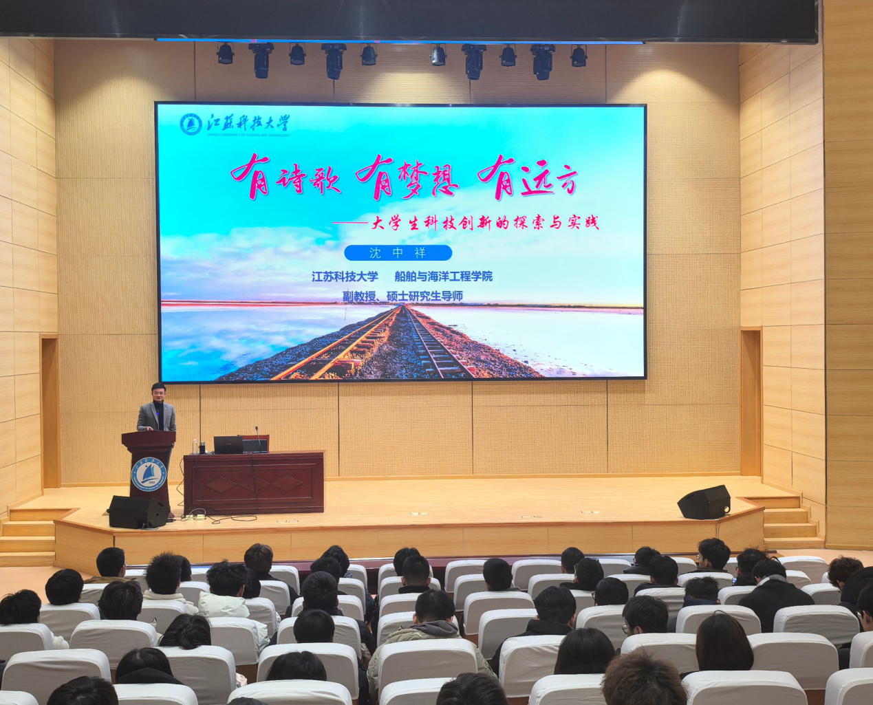 为引领新生同学提升科技素养,深化学术认知,培养创新精神,船舶与海洋工程学院近日在长山校区行政楼100号报告厅举“有诗歌、有梦想、有远方——大学生科技创新探索与实践”为主题的专题讲座,由沈中祥副教授主讲,学院党委副书记巫蓉主持,吸引了学院2024级全体大一新生的积极参与。