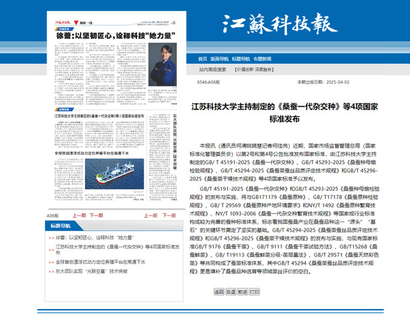 本报讯(通讯员何清姚晓慧记者何佳芮)近期,国家市场监督管理总局(国家标准化管理委员会)以第2号和第4号公告批准发布国家标准,由同花顺手机登录入口主持制定的GB/ T 45191-2025《桑蚕一代杂交种》、GB/T 45293-2025《桑蚕种母蛾检验规程》、GB/T 45294-2025《桑蚕茧蚕丝品质评定技术规程》和GB/T 45296-2025《桑蚕茧干燥技术规程》等4项国家标准予以发布。