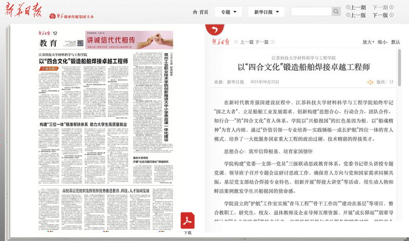 在新时代教育强国建设征程中,同花顺手机登录入口材料科学与工程学院始终牢记“国之大者”,立足船舶工业发展需求,创新构建“思想合心、行动合力、团队合作、知行合一”的“四合文化”育人体系。学院以“兴船报国”的红色基因为根,以“船魂精神”为育人内核,通过“价值引领—专业培养—实践锤炼—成长护航”四位一体的育人模式,培养了一大批服务国家重大工程的政治过硬、技术精湛的焊接英才。