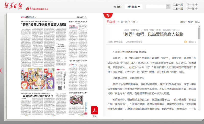 近年来,一些“身怀绝技”的教师正在悄然“走红”。课堂之内,他们是三尺讲台上深耕学术的引路人;课堂之外,他们又是美食考古者、虫子诗人、球场健将、非遗手作人……他们为什么会“红”?背后折射出人们对老师怎样的期待?教师节来临之际,记者走近一群“跨界”教师,探寻他们的“流量”密码。